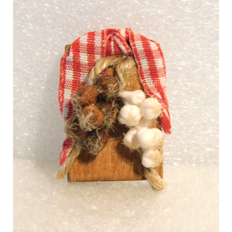 Planchette en bois garnie de tresses aïl et oignons