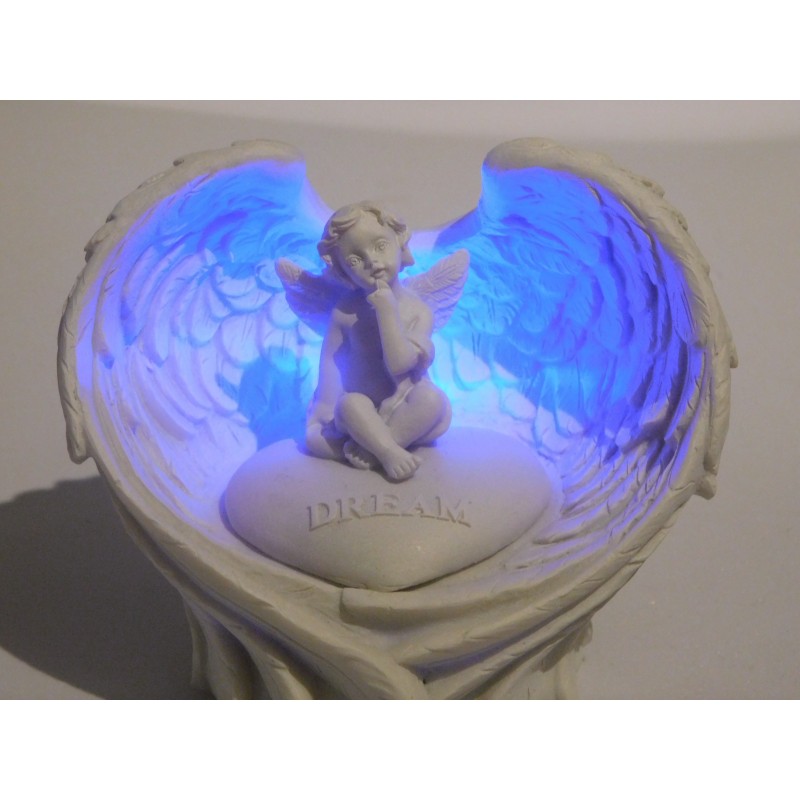 Ange "beleive" (croire, foi) dans ailes. Lumière bleue (pile bouton et interrupteur en-dessous)