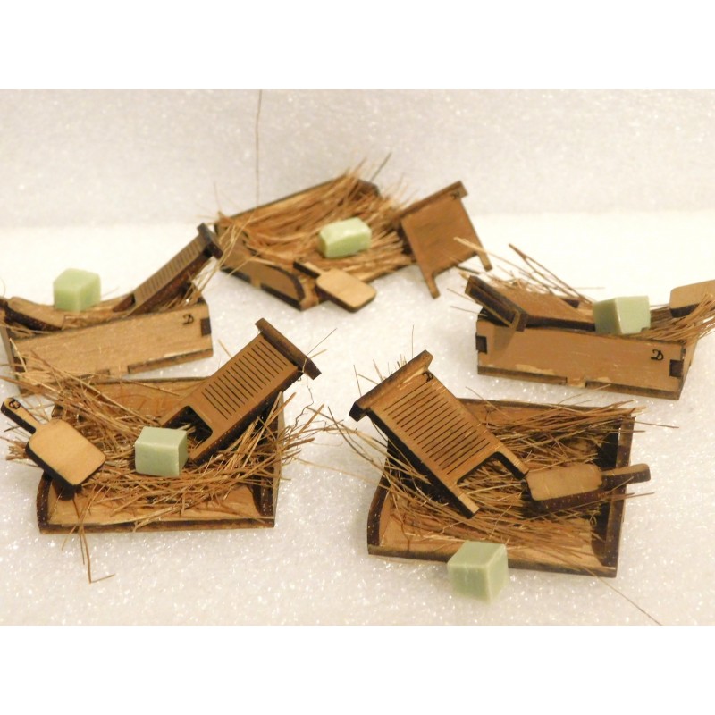 Comprend : l'agenouilloir avec paille, planche, battoir et véritable savon.