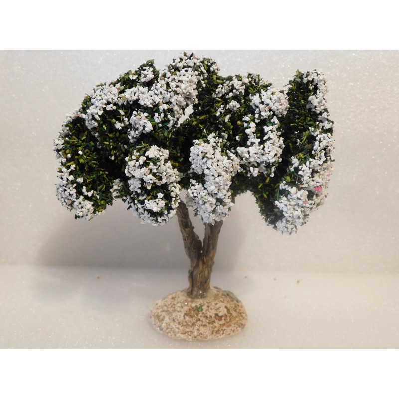 Arbre tronc bois, fleuri blanc, 12cm de haut