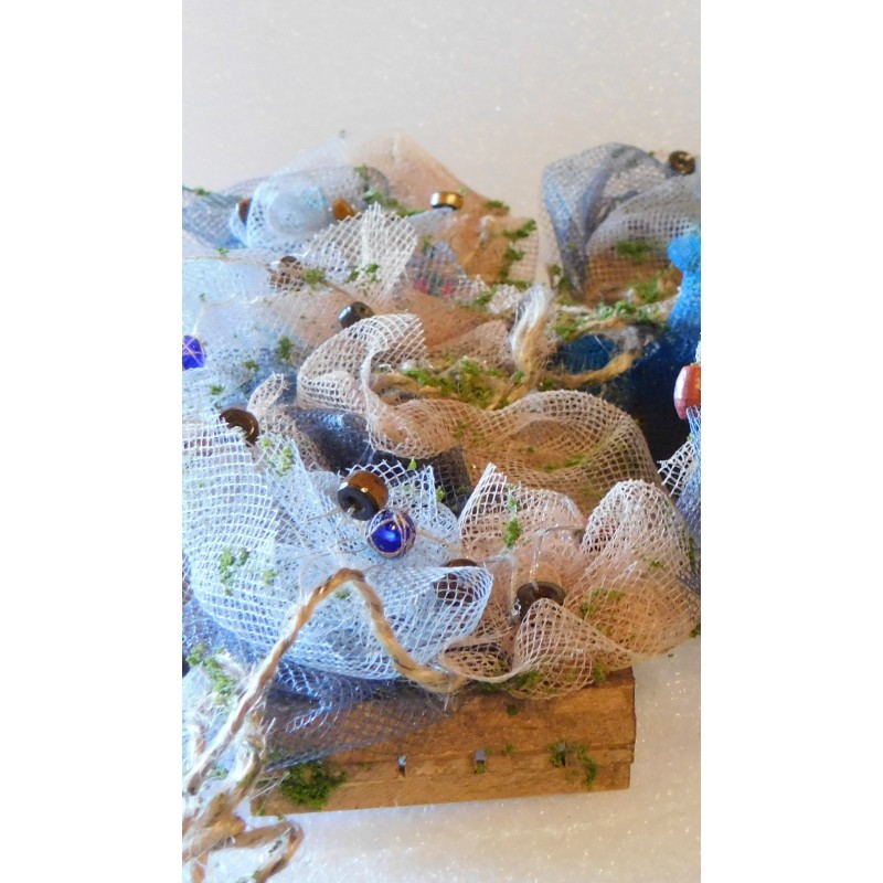 1 Caisse en bois avec filets de pêche, flotteurs... Vendue à l'unité.